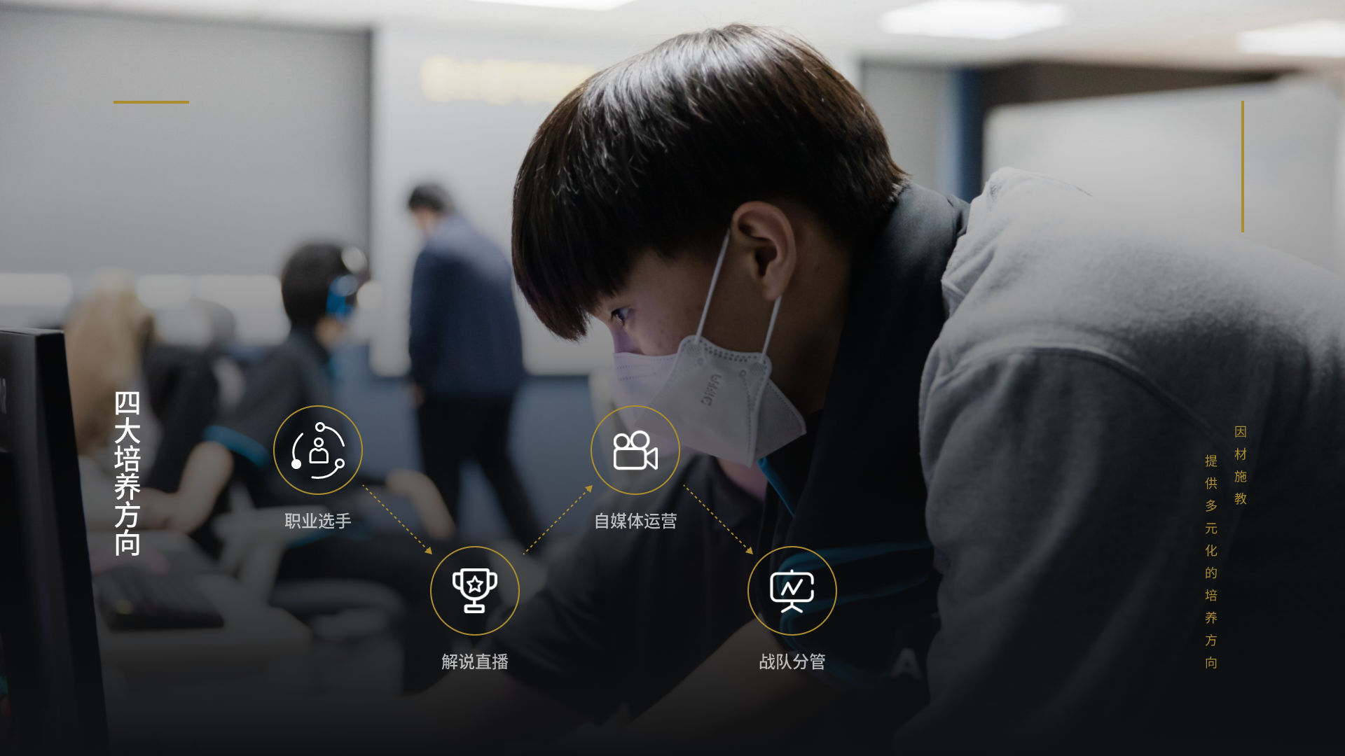 与LPL、LDL、KPL、KGL等一线职业联赛挂钩,优秀学员推送至职业电竞俱乐部试训,有机会作为职业选手活跃在各大联赛